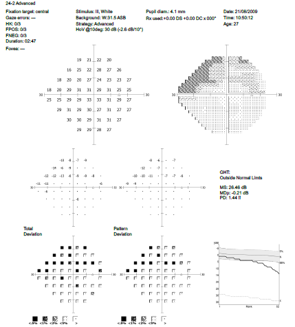 | Méthode de fixation | Suivi du regard, surveillance des clignements, Heijl/Krakau |