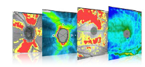 - Topographie OCT : le module Topographie OCT fournit l'analyse des deux surfaces en fonction de la courbure cornéenne, de la puissance dioptrique, de l'élévation et de l'analyse de la puissance réelle en fonction des surfaces et de l'épaisseur locale de la cornée (Ray tracing).