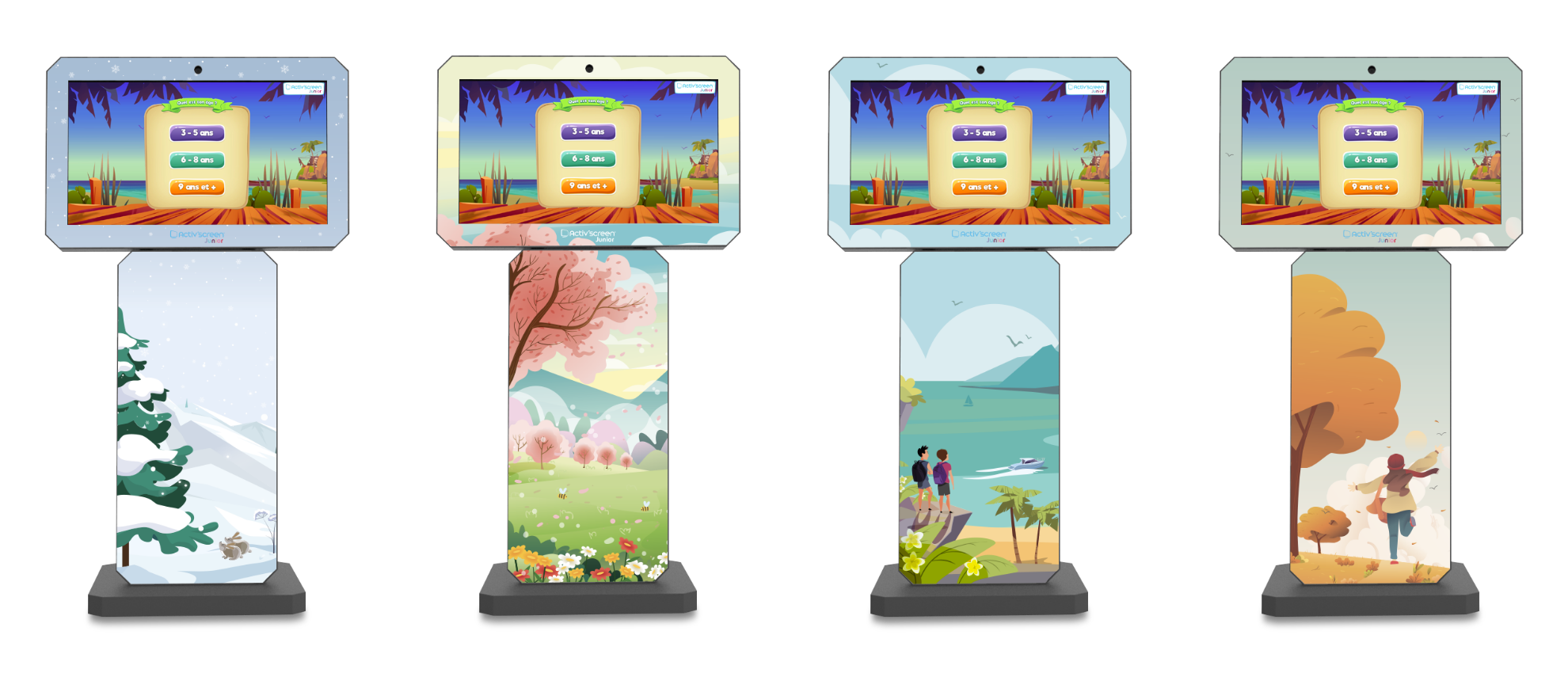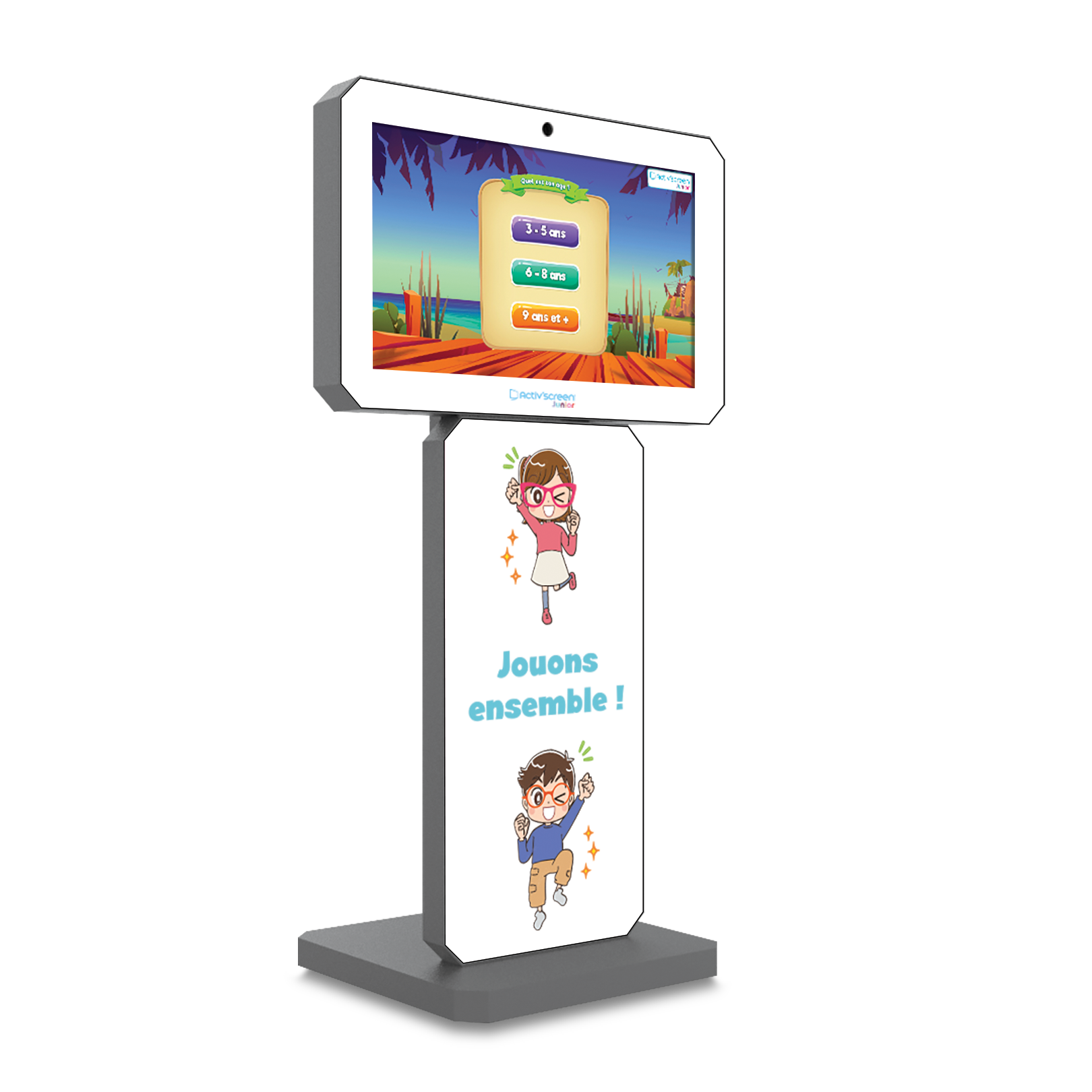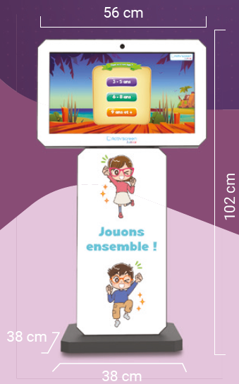 - Le totem kids (écran 21,5" tactile inclinable, caméra et ordinateur intégré, pack de jeux éducatifs) ;